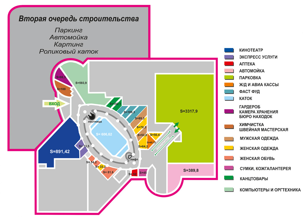 Каток, бильярд, боулинг, спортивная часть, кинотеатр |