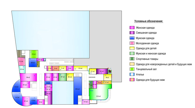 Магазины парфюмерии «Французский Дом BSB», «Beautymania», магазин аудио, видео продукции «Меломан», супермаркет «Рамстор», кинотеатр «Chaplin», боулинг «Golden Strike» |